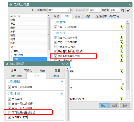 ? 用戶默認設(shè)置和加工首選項設(shè)置