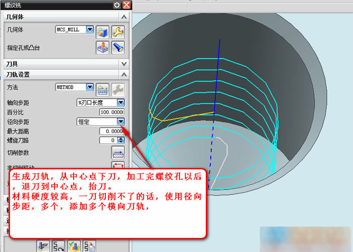 這時候,我們就需要換一種加工方式了,需要使用螺紋銑。銑削螺紋。