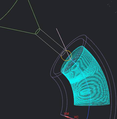 我們看到刀路并不是我們想要的,我們想要從一面轉(zhuǎn)下去。好,我們打開驅(qū)動方法,如下圖,將兩側(cè)改為入口朋友們可以親側(cè)一下效果