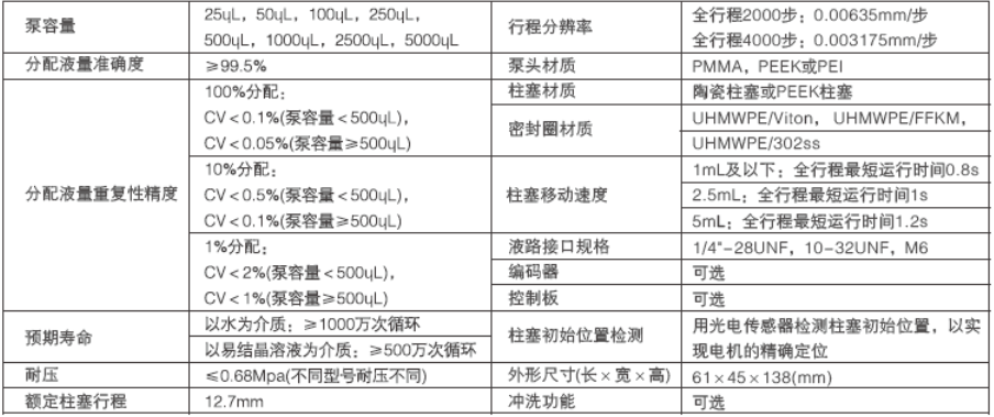 可選沖洗功能,以實現(xiàn)易結晶溶液的長壽命傳輸??膳渲秒姍C編碼器,以實現(xiàn)電機位置的實時監(jiān)控??膳渲弥每刂破?,以縮短集成系統(tǒng)開發(fā)周期。