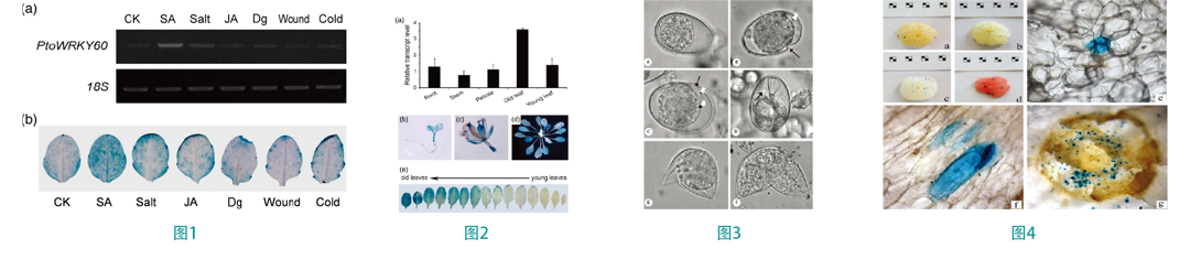 1、YE S, JIANG Y等人利用基因槍系統(tǒng)通過提高楊樹轉(zhuǎn)錄因子PtoWRKY60組成型表達提高楊樹對潰瘍病菌SACC的抗性研究結(jié)果。 【圖1、2】