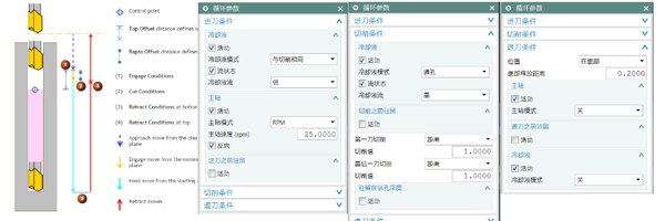 ? 專(zhuān)用的運(yùn)動(dòng)和事件框架以及設(shè)置來(lái)控制進(jìn)刀、切削和退刀條件(主軸、冷卻、駐留等)