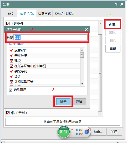 按上圖提示操作點擊新建--更改名稱—點擊確定 自己命名的的菜單欄就會出現(xiàn)啦