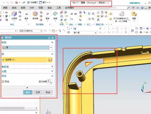 這個是用NX10打開的一個面板模型,下面我們用刪除面刪除其中一個面。