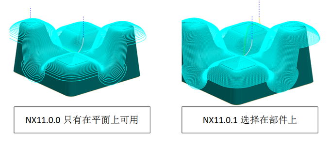 今天給大家介紹一個NX11.0.1版本中固定軸輪廓銑削模式下驅動方法為區(qū)域銑削選擇陡峭非陡峭時的更新內容。