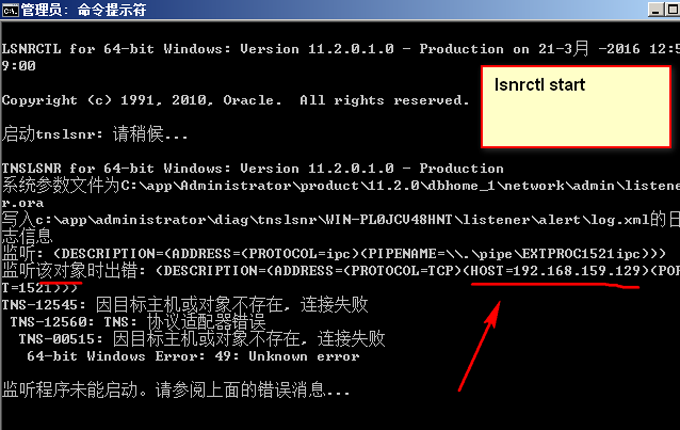 4.重新運行l(wèi)snrctl start命令啟動listener即可