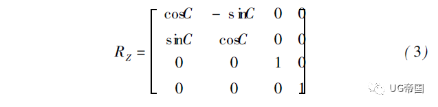 又令繞 Z 軸的旋轉(zhuǎn) C 的坐標(biāo)變換公式為: