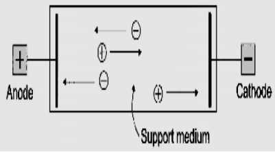 現(xiàn)代電泳多在固體支持物上進行,使樣品中的不同組分形成不同的區(qū)帶,稱區(qū)帶電泳。電泳結(jié)束后,支持物可以方便地進行染色等后續(xù)處理。 對支持物的一般要求是均勻,吸附力和電滲小,機械性能好,便于染色或紫外光下檢測,故最好透明,無紫外吸收。常用支持物有濾紙,醋酸纖維素薄膜,淀粉凝膠,聚丙烯酰胺凝膠,瓊脂糖凝膠等 支持物性質(zhì)不同也會影響泳動速率,如瓊脂糖和聚丙烯酰胺凝膠都有大小不同的篩孔,在篩孔大的凝膠中溶質(zhì)顆粒的泳動速率快,反之則慢。